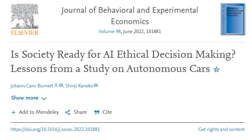 “事實上,當(dāng)參與者被明確要求將他們的答案與社會的答案區(qū)分開來時,人工智能和人類司機之間的差異就會消失。”廣島大學(xué)人文社會科學(xué)研究生院助理教授 Johann Caro-Burnett 說。