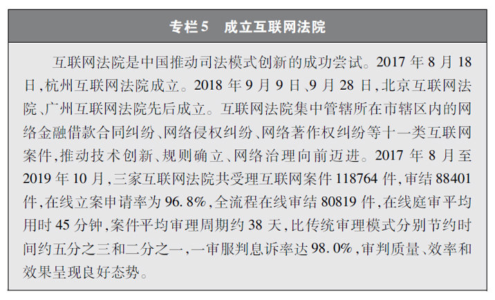 隨著互聯網新技術新應用新業態的快速發展,網絡空間承載的法律關系更為豐富多元,給網絡空間司法保障帶來了新挑戰,需要構建更為完善的網絡司法規則。中國及時制定涉及網絡知識產權、人格權、網絡交易、網絡不正當競爭、電信網絡詐騙等領域的民事和刑事司法解釋。通過審理涉及網絡基礎設施安全、算法規則、數據權屬交易、個人信息保護、網絡平臺治理等一大批新類型、疑難復雜和互聯網特性突出的司法案件,細化法律適用標準,促進裁判標準統一,網絡空間規則、行為規范、權利邊界和責任義務日益明晰。制定人民法院在線訴訟、在線調解、在線運行規則,細化電子數據證據規則,規范網絡犯罪案件辦理程序,網絡司法程序規則體系逐步建立。網絡司法規則的體系化、系統化,為網絡司法工作提供了規則引領和制度保障,讓網絡司法有章可循。